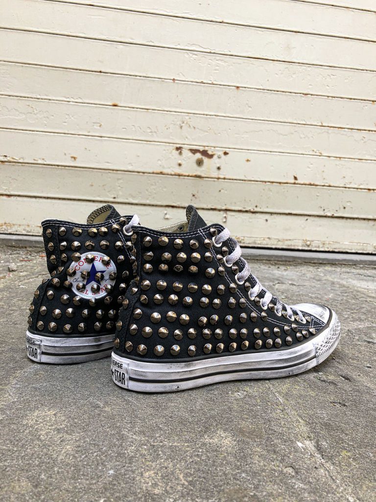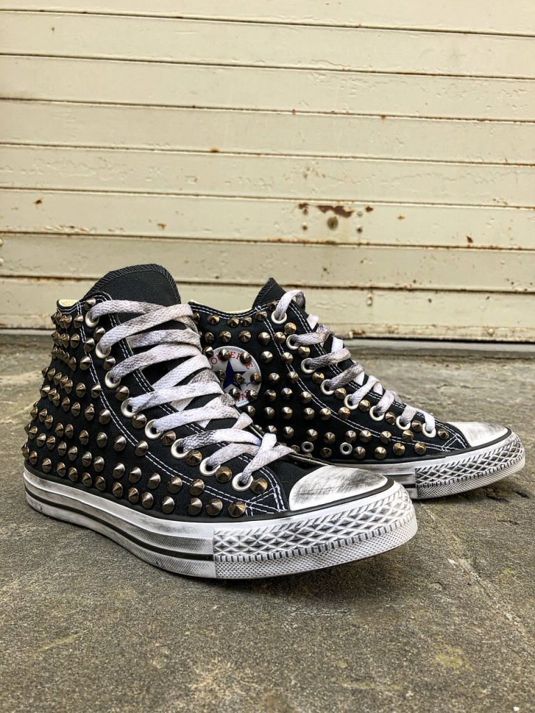 CONVERSE PLATFORM HIGH Black Pitone Argento Borchie