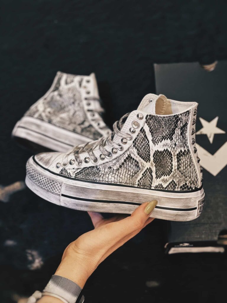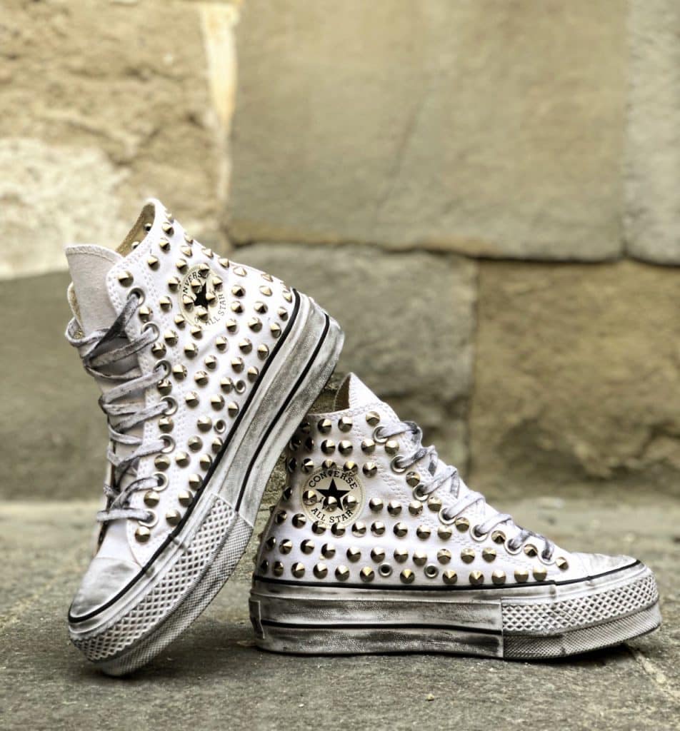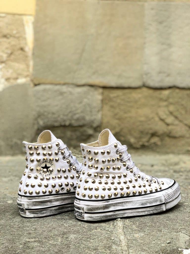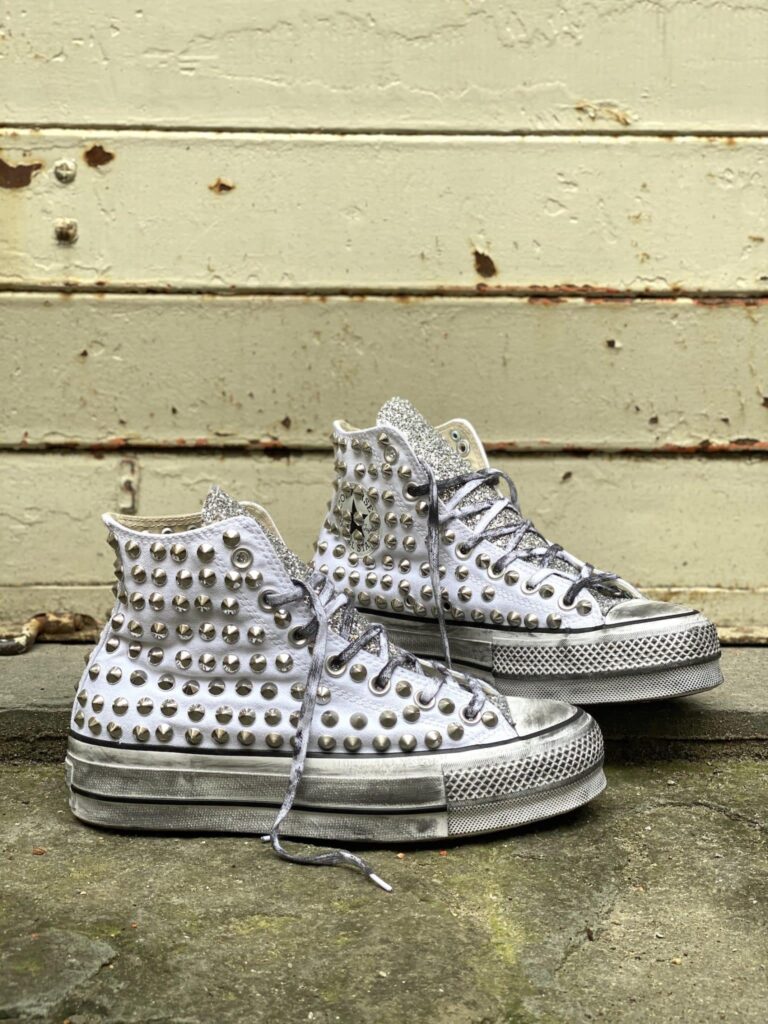 CONVERSE PLATFORM HIGH White Pitone Argento Borchie