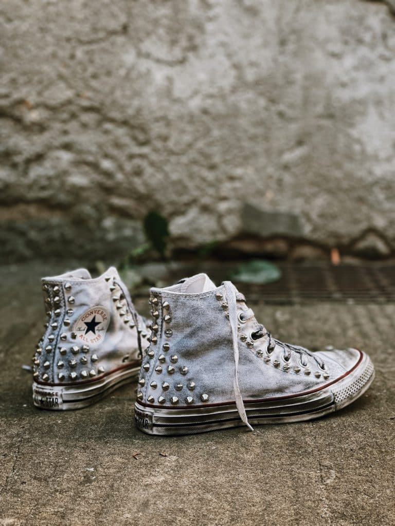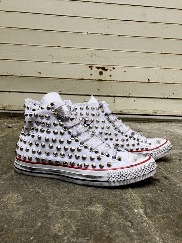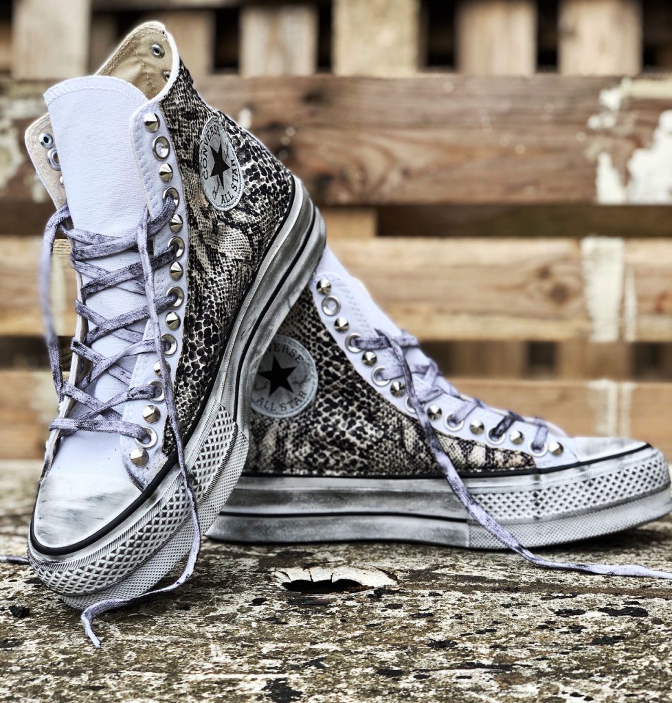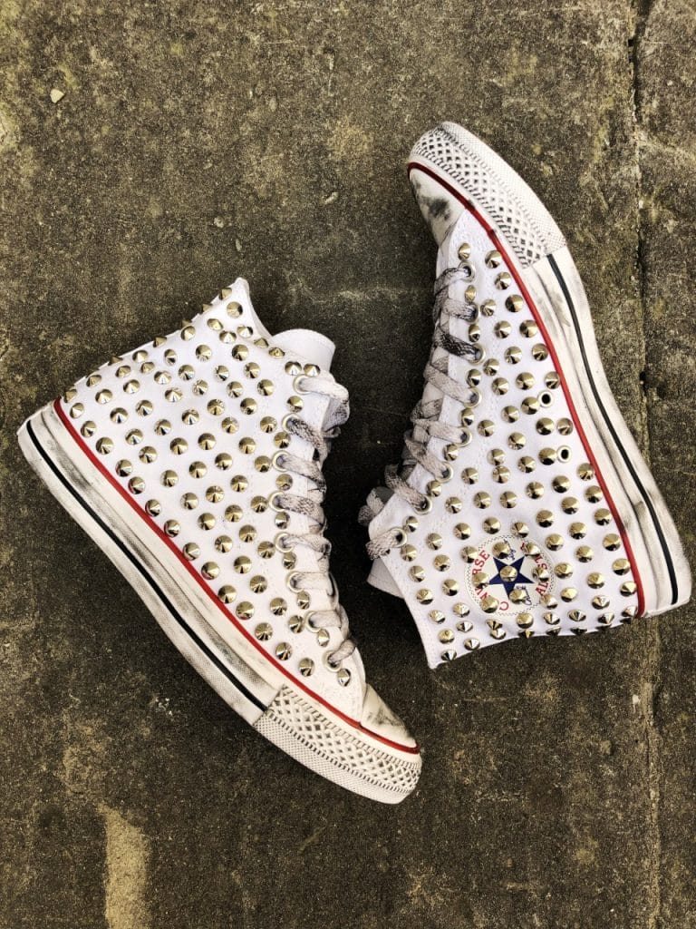 CONVERSE PLATFORM HIGH White Pitone Argento Borchie