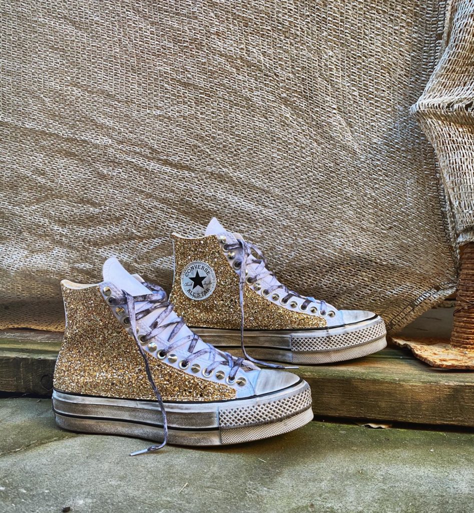 CONVERSE PLATFORM HIGH White Glitter Oro