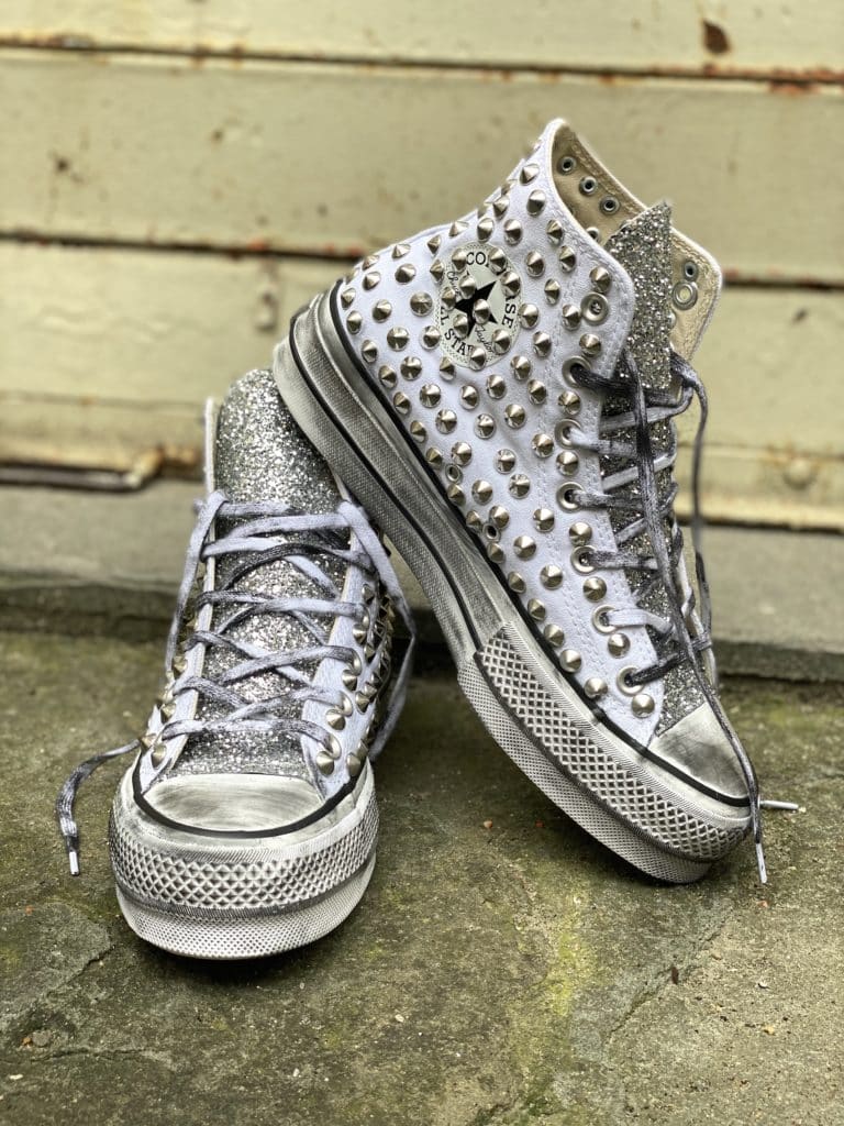 CONVERSE PLATFORM HIGH White Glitter Full Borchie