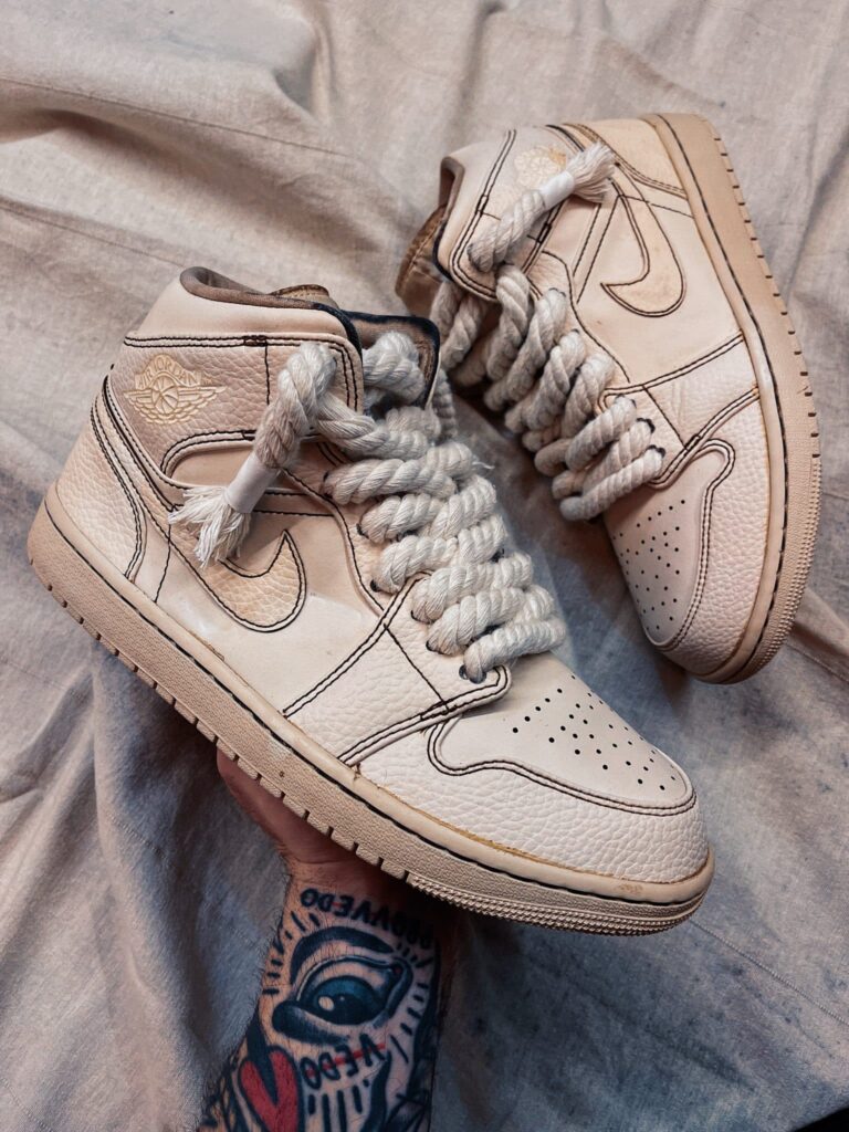 Nike Air Jordan Mid White Yellowed Rope Laces