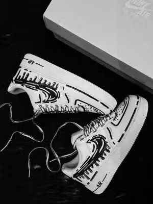 Nike modello air force low in pelle colore bianco rifinita con swoosh effetto “DRIPPING” e tomaia dipinta a mano effetto “CARTOON”Materiale scarpa: Pelle e Similpelle.