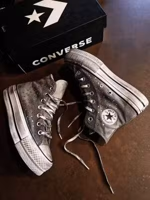 La tomaia, la suola e i lacci sono trattati con un effetto “used” per un look autentico, quasi rubato dal cuore della strada.
