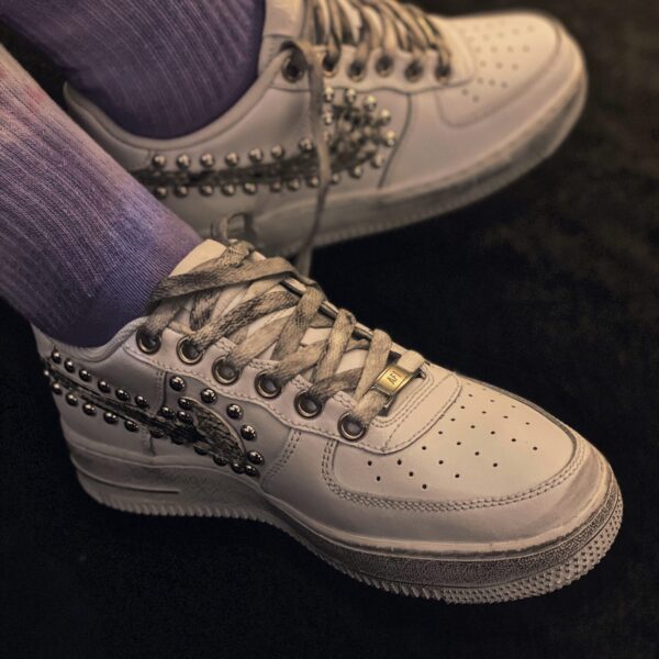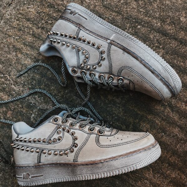 Converse modello PLATFORM alta rifinita con borchie coniche colore argento su tomaia ed invecchiatura di suola e lacci.