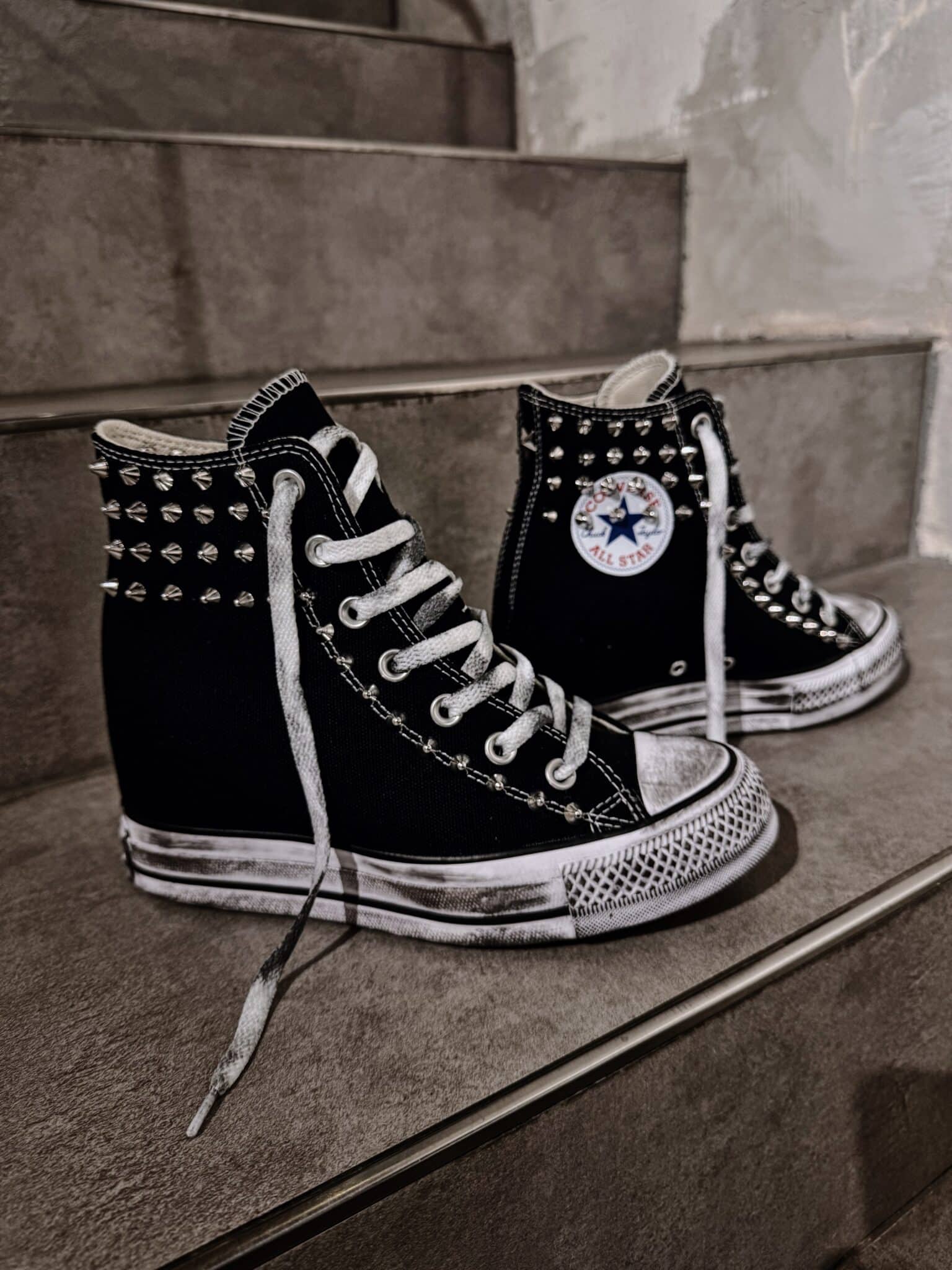 Eleva il tuo stile con le Converse Platform Wedge, sneakers con zeppa interna da 7,5 cm che slanciano la silhouette unendo comfort e personalità.