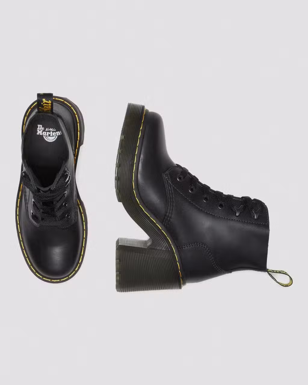 Il modello Jesy è uno stivale stringato a 6 occhielli con l’inconfondibile DNA di Dr. Martens. È traforato con occhielli color piombo e ganci stile sciatore e abbellito da un anello posteriore giallo e nero. Realizzato in morbida pelle Sendal su un robusto tacco squadrato, la suola presenta le nostre tipiche scanalature e cuciture gialle.