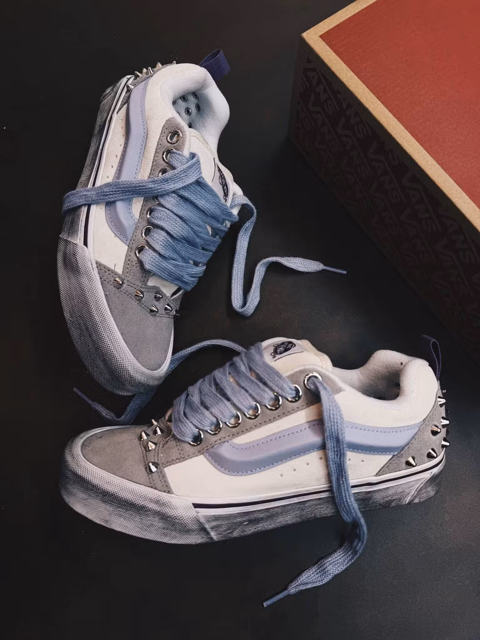 - Le knu skool rivisitano le originali old skool fondendo un’icona del passato con le tendenze di oggiscarpa dal profilo basso stile anni ’90 rivisitatarobusta tomaia in pelle scamosciatalinguetta e collo imbottitisidestripeâ„¢ imbottita e sagomata in 3 dlinguetta sul tallone per indossare la scarpa facilmenteoriginale suola waffle in gomma abbiamo aggiunto borchie coniche colore argento su tomaia e tallone