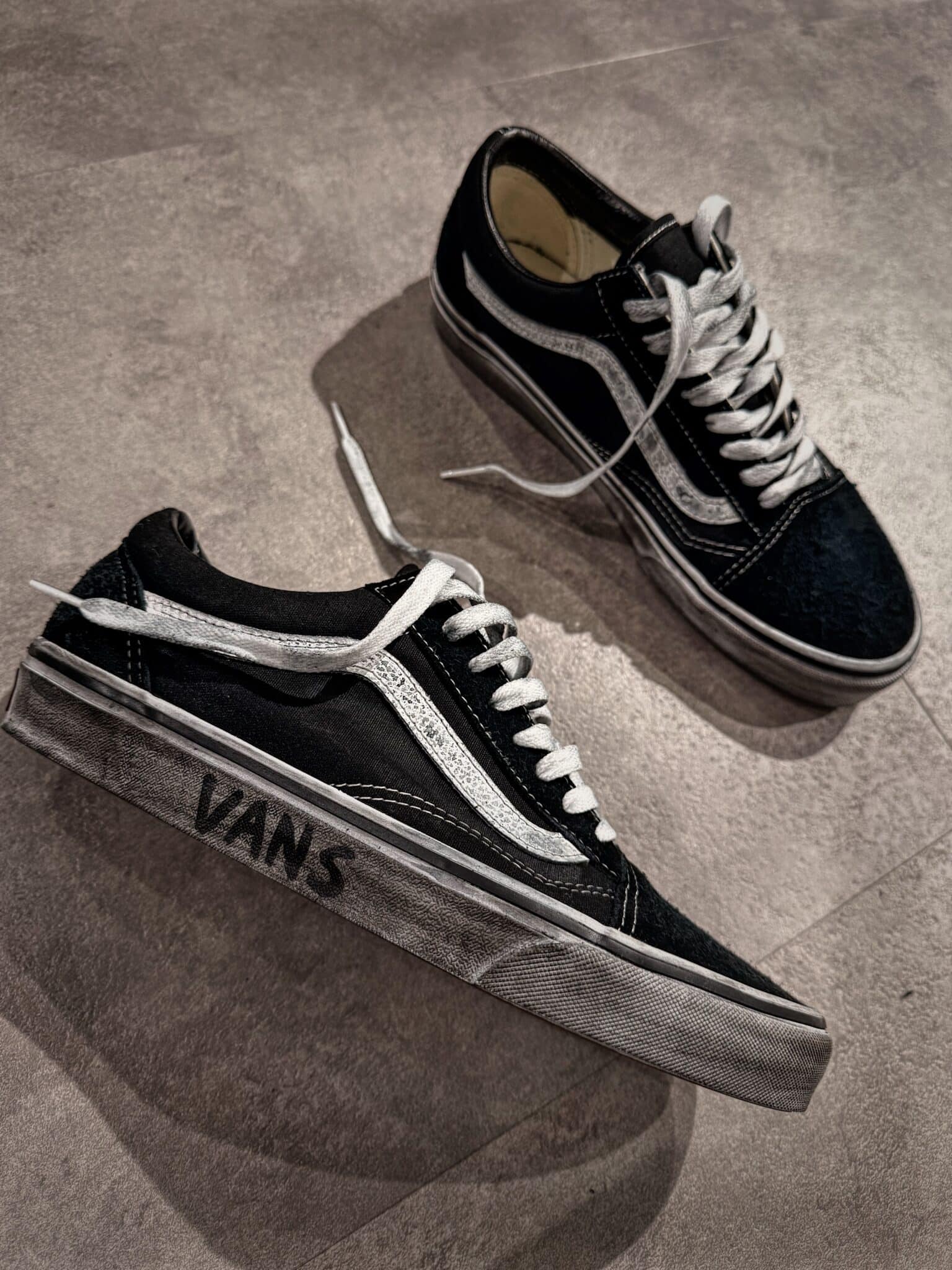 Questa Vans Old Skool Custom Distressed nasce da un processo artigianale che trasforma l’iconico modello in un pezzo unico dal carattere deciso.