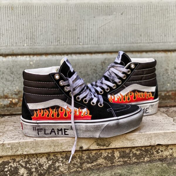 Esalta il tuo stile con Vans modello old skool con suola classica, colore bianco dipinta a mano con effetto cartoon. Un tocco perfetto per ogni tuo outfit!