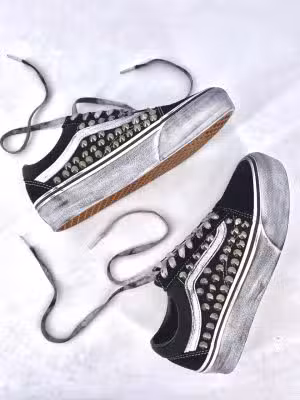 Esalta il tuo stile con Vans modello OLD SKOOL PLATFORM bassa rifinita con borchie coniche colore argento sulla tomaia ed effetto used di suola e lacci. Un tocco perfetto per ogni tuo outfit!